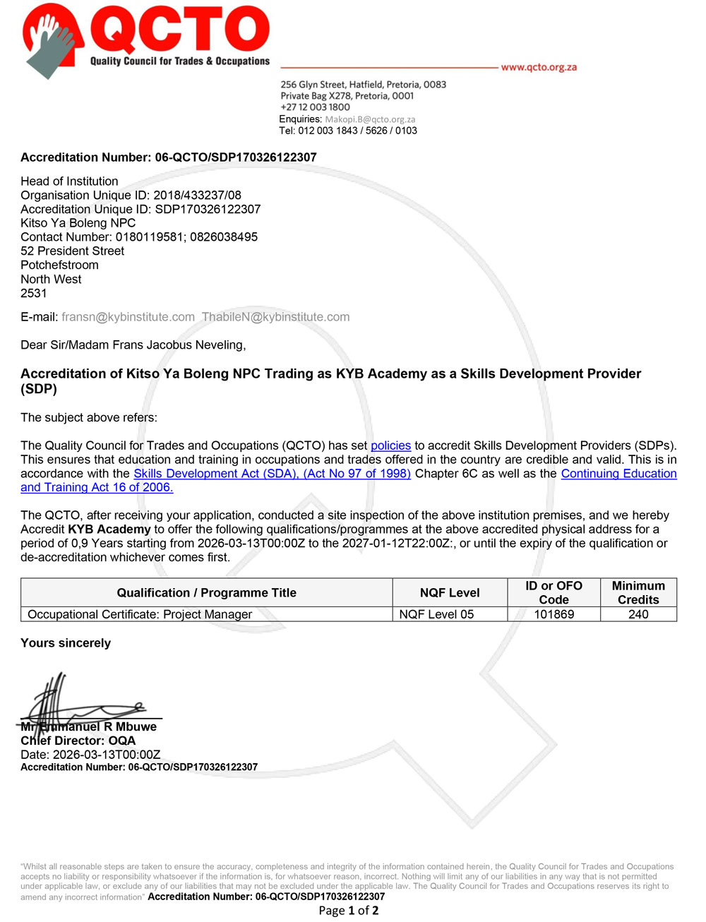 QCTO Certificates